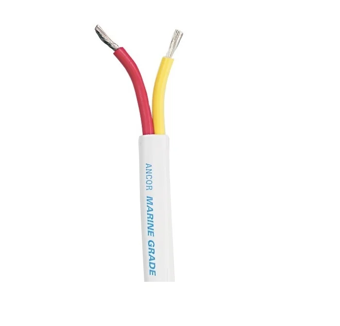 Ancor safety duplex cable features red and yellow Marine Grade primary conductors (correctly color-coded to ABYC standards) in a white common jacket that is made for easy removal while providing the best abrasion resistance available. These cables exceed UL 1426 standards and are made from the highest quality ultra flexible (Type 3/Class K) tinned copper stranding that provides maximum protection against corrosion and electrolysis while resisting fatigue due to vibration and flexing. The premium vinyl insulation is rated at 600 volts, 105 deg C dry and 75 deg C wet, stays flexible even in extreme cold (-40 deg F/C) and resists salt water, battery acid, oil, gasoline, heat, abrasion and ultra-violet radiation.