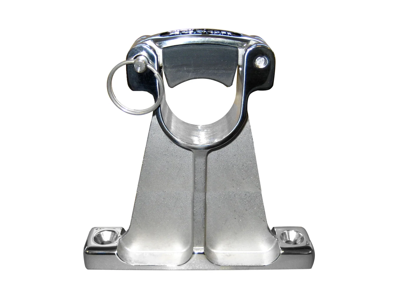 These strong and attractive standoffs will limit the amount of wear and tear on your antennas while powering through rough seas. Made from investment cast 316 stainless, they will never break like plastic. Fitting all antennas up to 1.5″ in diameter, they are available in three sizes, virtually eliminating the need to shim the standoff or antenna base. The clasp is held closed with a quick release pin allowing for quick antenna takedown to go under bridges or for trailering. Each clasp is padded providing a secure, rattle free closure. The combination of a highly polished and vapor blast gray finish enhance the sleek, attractive styling.