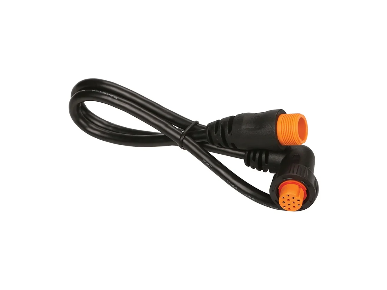 Install your chartplotter in tight-fitting locations or replace your black box sonar cable with this 23.6-inch, right-angle transducer adapter cable. Supports all Garmin and Airmar (with XID) 12-pin transducers.