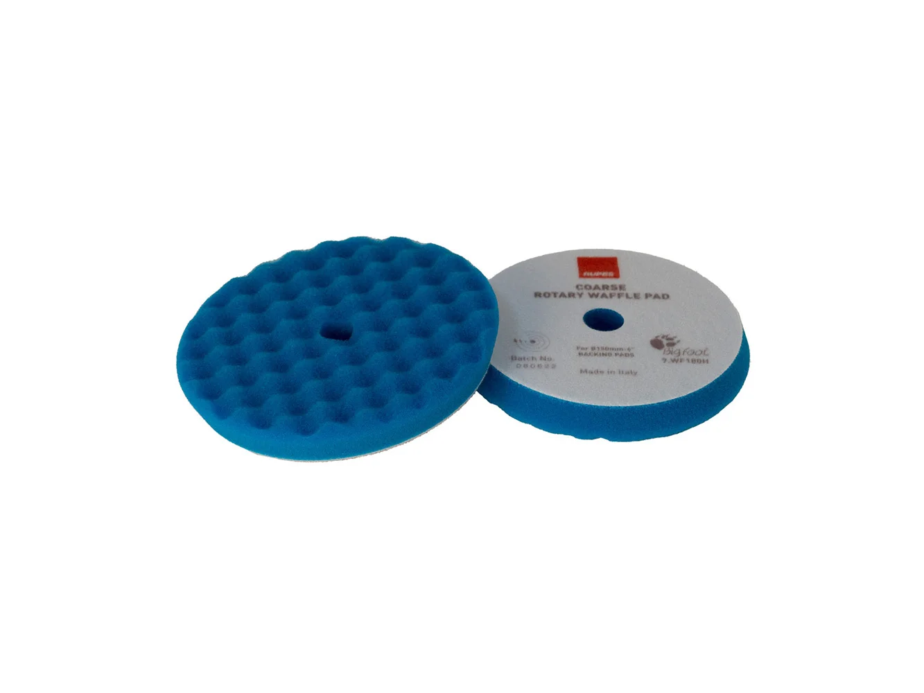 The WAFFLE COARSE FOAM PAD is the coarsest of our Rotary Waffle Pad range. Made of a blue foam material, this pad provides high performance and aggressive removal of severe defects and sanding marks on painted surfaces. Thanks to the waffle pad face, the Waffle Coarse Pad provides rotational stability and reduces heat build-up caused by rotary motion. The blue Waffle foam pads for rotary are designed to work with the BigFoot LH19E and any other rotary polisher. We recommend pairing them with our Rotary Coarse Compound.