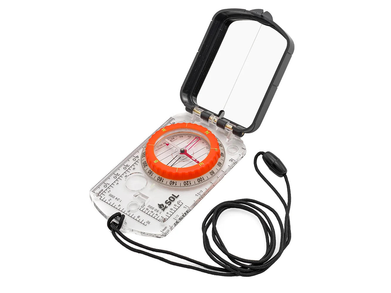 - The sighting mirror allows for precise bearings and doubles as an emergency signal mirror